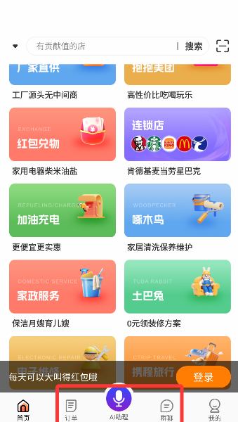 3、底部导航栏住着你的订单管家、AI小秘书和“群群”社交圈,查记录、聊八卦或求救都能在此一键搞定。