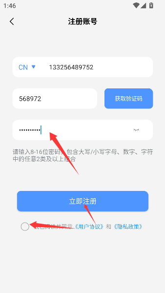 2、接着输入验证码并设置密码,这步骤如同设定一个专属的通关密语,双重保险让安全堡垒立刻筑起。