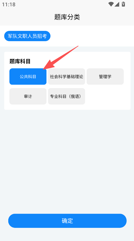 1、打开软件后、进入题库分类板块、选择目标考试科目并点击确定。