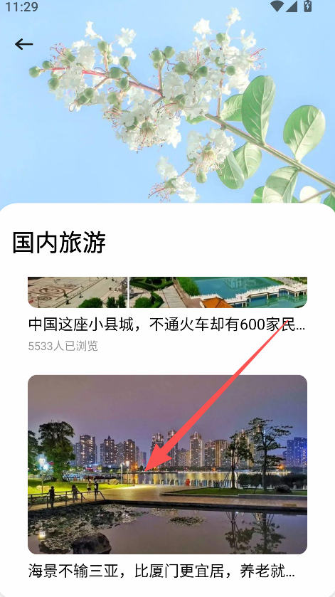 2、在国内旅游页面、挑选目标攻略内容、点击进入详情页。