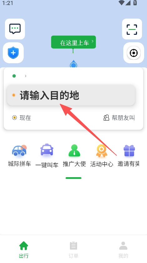 1、支持目的地输入功能,在出行页面填写目的地信息,进入对应的地址选择环节。