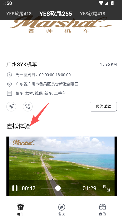 3、具备虚拟体验功能,在门店详情页,观看相关视频获取机车相关体验内容。