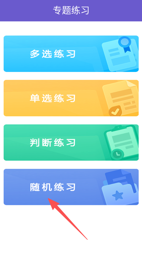 2、在专题练习页面、选择目标练习类型(如随机练习)、进入题库测试页面。