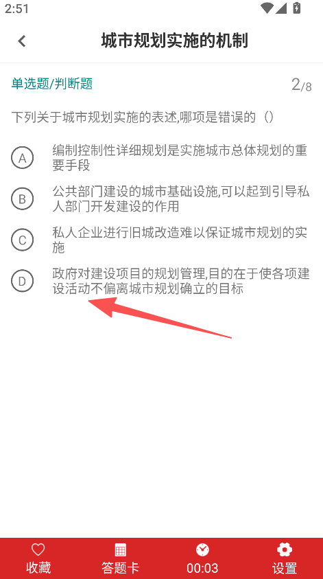 3、具备题目答题功能,在题目页面浏览单选判断类题目,进行答题操作,推进城乡规划师考试的备考进程。