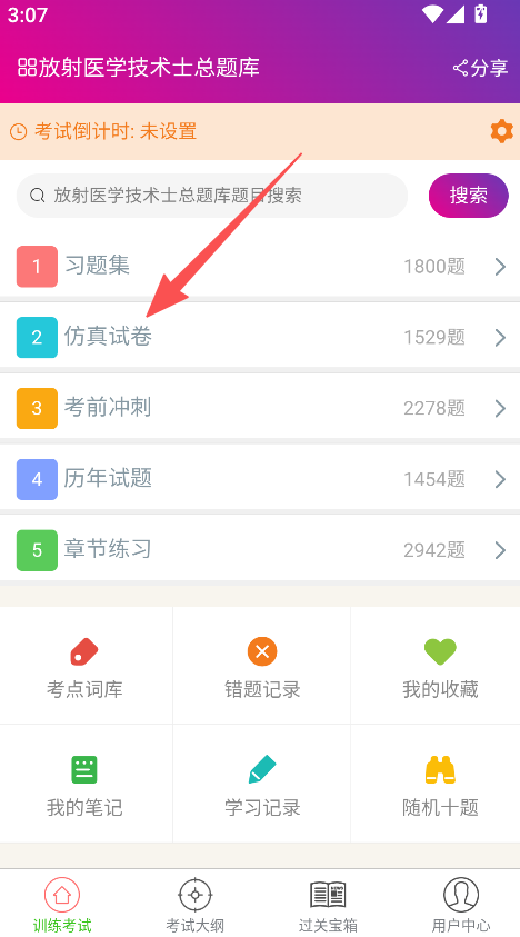 1、打开软件后、进入首页选择仿真试卷模块、进入对应页面。