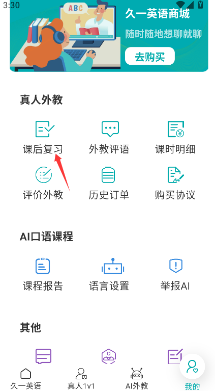 2、选择"课后复习"选项,进入对应的学习功能界面。