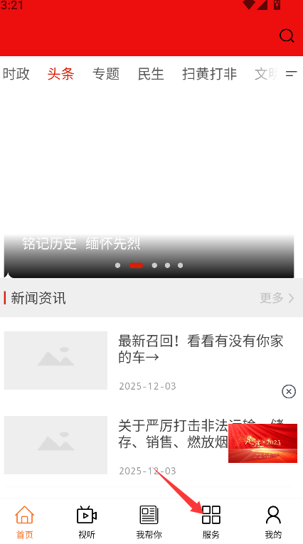 1、启动应用进入主界面后,点击底部导航栏或页面中心的"服务"功能入口。