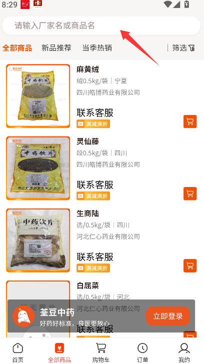 2、于页面顶部的搜索框内输入具体药品名称,系统将快速展示相关商品列表。