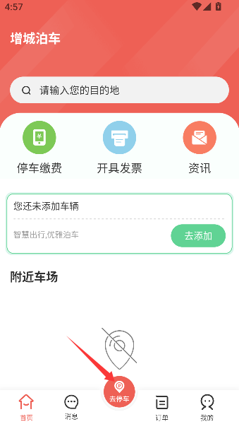 1、轻点“去停车”按钮,犹如发布一道停车指令,一场为爱车寻找舒适港湾的轻松之旅即刻开启。