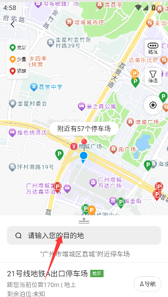 2、输入心仪目的地,智能系统将如一位熟悉街巷的老友,迅速罗列周边空位并推荐最佳选择。