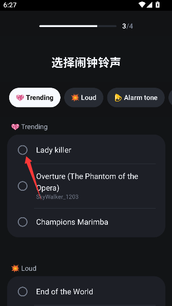 3、在铃声列表里选定一个声音,这阵旋律将是把你从梦境拉回现实、不容商量的“战斗号角”。