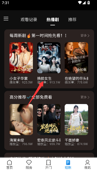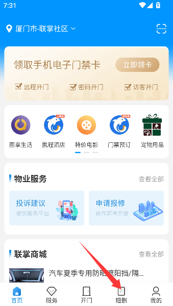 1、点击首页底部的“短剧”入口,就像推开社区文娱小剧场的帷幕,精彩内容即刻呈现眼前。