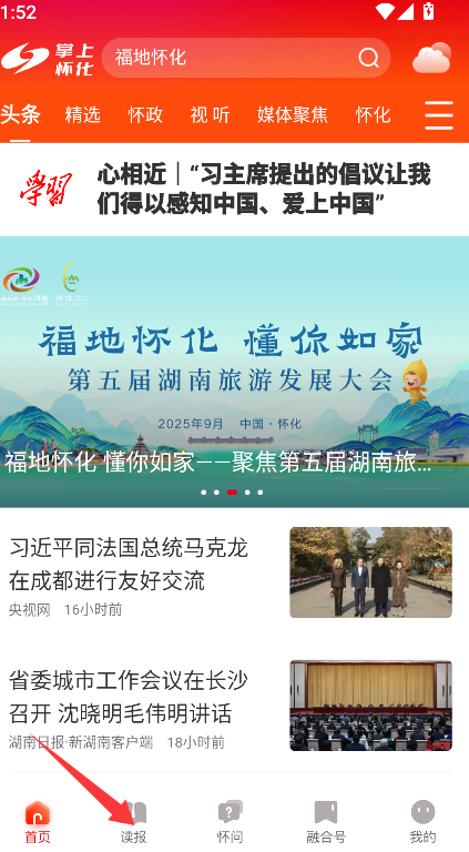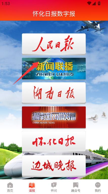 1、找到并点击清晰标注的“读报”功能入口,页面将跳转至电子报列表或分类界面。