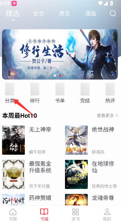 1、可以清晰看到位于显眼位置的“分类”导航入口,点击即可进入按题材类型系统划分的书库目录。