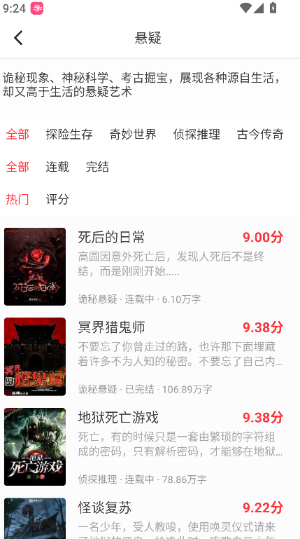 3、系统随即展示该类别下丰富的作品列表,包含大量相关小说或漫画资源,并配有简介与封面,方便浏览并挑选喜爱的内容。