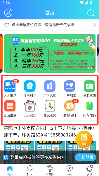 2、首页中央排列着“人才市场”、“住房租售”等板块,像个热闹的线上集市摊位,任你挑选所需的生活服务与机会。