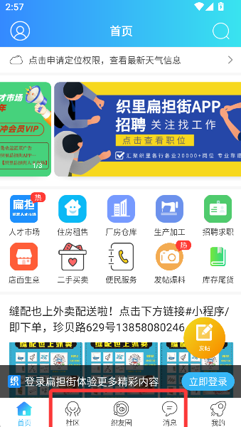 3、首页底部的“社区”和“织友圈”等标签,就像通往左邻右舍客厅的传送门,一键即可潜入街坊的闲聊与趣事之中。