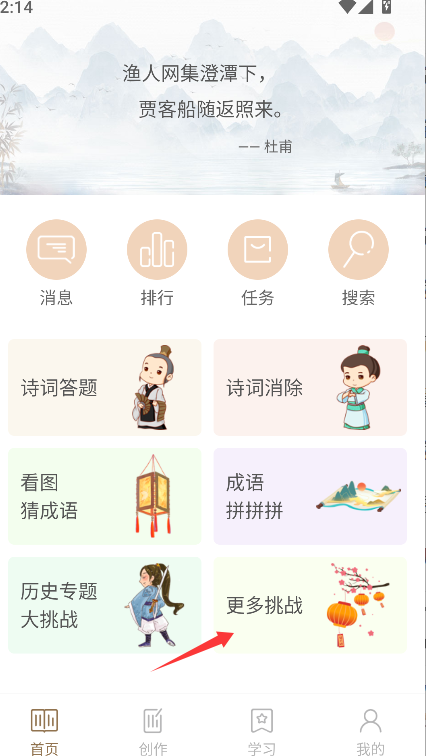 1、在主界面首页的显眼位置找到并点击"更多挑战"按钮,进入扩展活动选择页面。