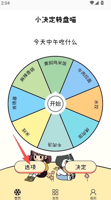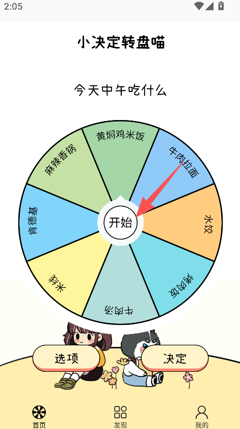 1、以转盘形式呈现选择过程,搭配可爱视觉元素,让原本纠结的做决定过程更具趣味性与轻松感。