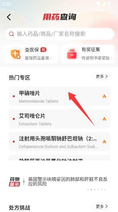 2、通过浏览或搜索定位到需要详细了解的具体药品名称并点击。