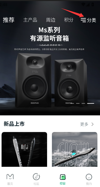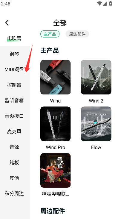 1、找到并点击“分类”导航入口,进入按乐器类型划分的浏览页面。