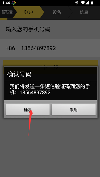 2、在弹出的方框里输入手机号码并点击下一步,这串数字如同你在这个物流网络中的专属无线电呼号,将被系统识别与登记。