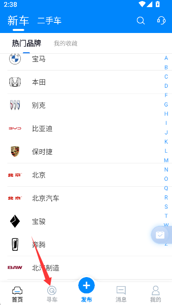 1、首先,点击那个醒目的“寻车”按钮,仿佛展开一张通往无数钢铁坐骑的电子藏宝图。