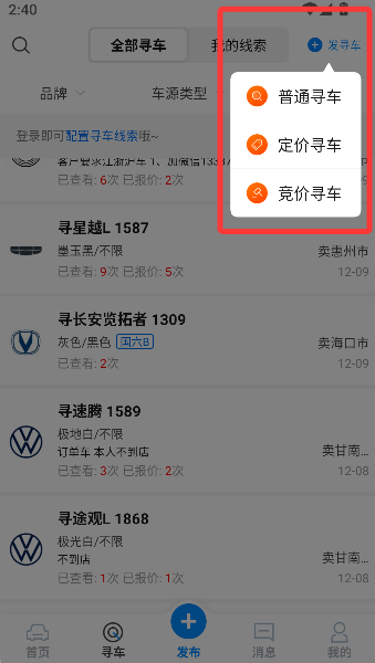3、或者,潇洒地点一下右上角的“+”号,如同启动许愿机,输入你对理想座驾的所有幻想条件。