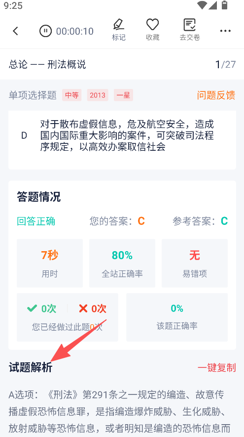 3、完成选择后进入做题界面,做题后可查看试题解析。