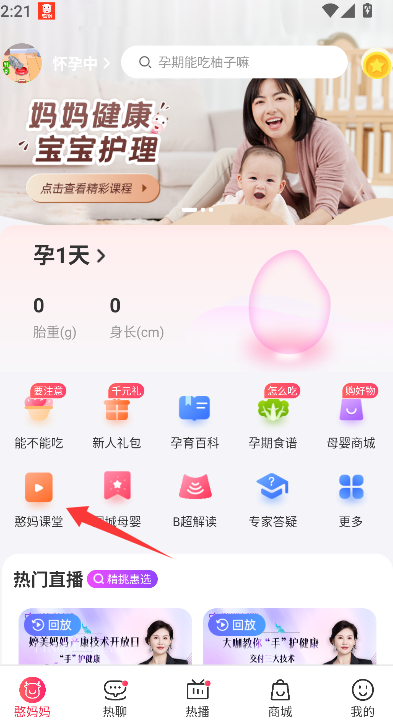 1、 在应用主界面找到并点击“憨妈课堂”入口。
