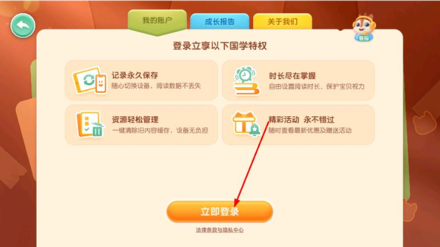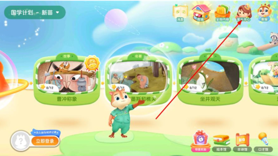 1、在主界面右上角找到并点击“家长中心”图标,即可进入专属管理功能的人口验证界面。