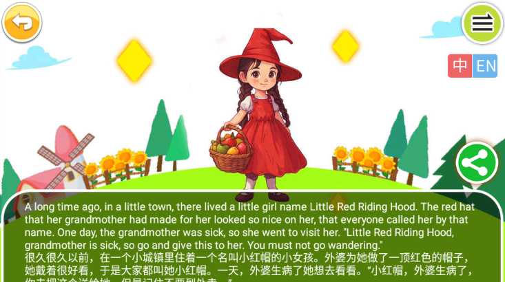 3、即可进入一个有声绘本故事界面,伴随着中英文互换朗读开始收听故事。