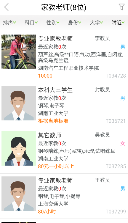 2、系统会呈现一份经过匹配的教师列表,列表中包含多位可供选择的老师信息。