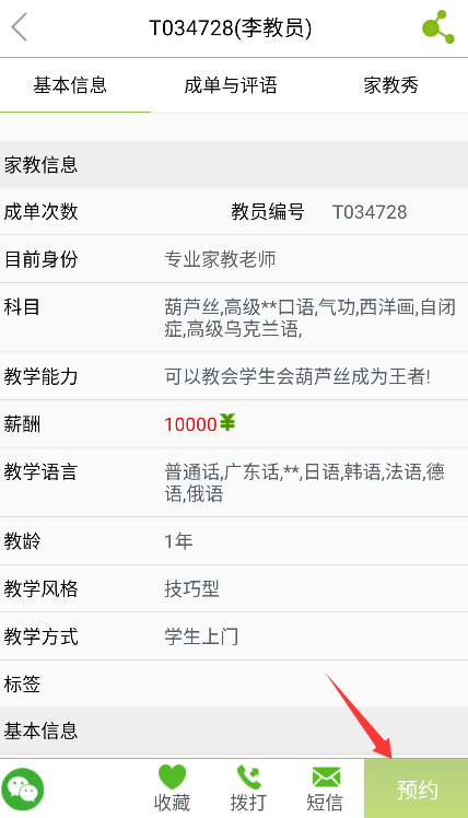 3、点击进入其个人详情页面查看完整资料,并可点击“立即预约”按钮开始预约流程。