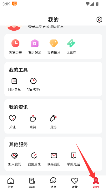 1、首先,请勇敢地点进那个叫“我的”地盘,这里是你在这款房产软件里的个人小领地。