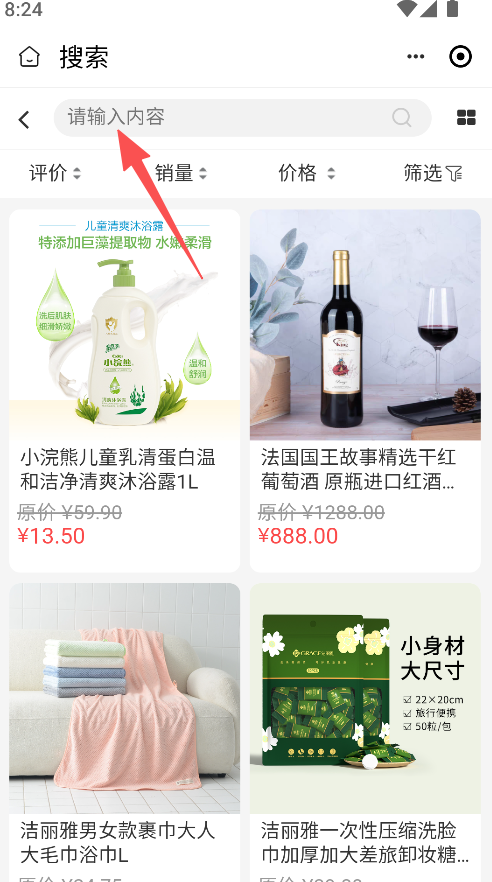 1、设有商品搜索功能,输入内容即可查找对应商品,获取多品类的购物选择。
