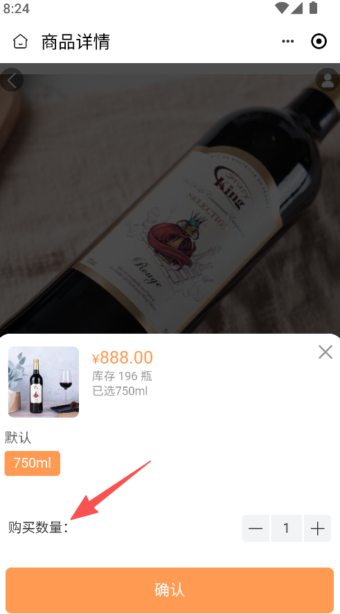 3、在商品详情页调整购买数量,点击确认完成选择。
