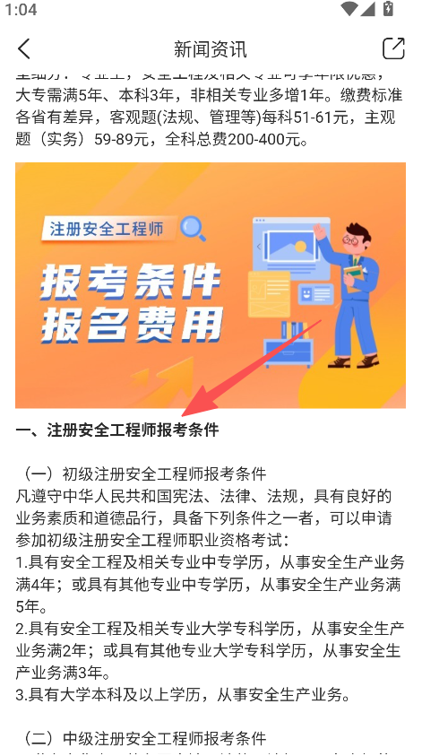 3、进入资讯详情页,阅读注安考试的报考条件等信息。