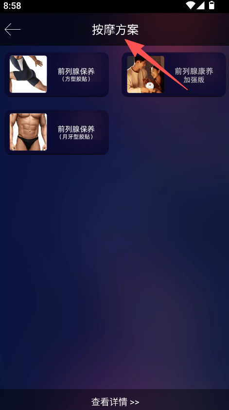 2、在按摩方案页面,选择对应的前列腺康养方案。