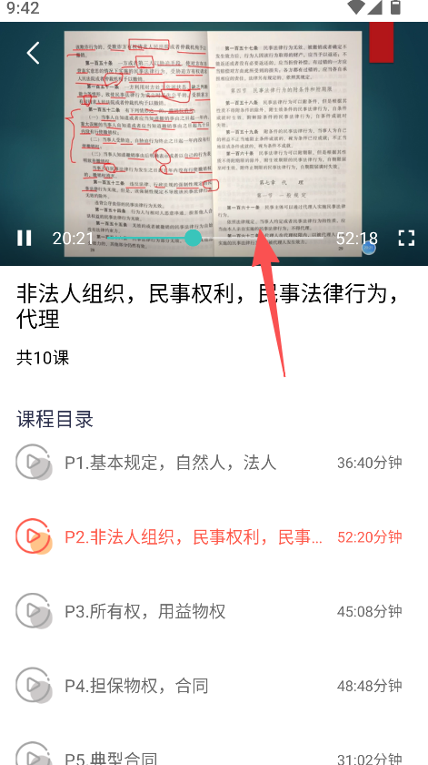 3、实现课程播放学习功能,点击选定课程,可播放并学习对应的民法典内容。
