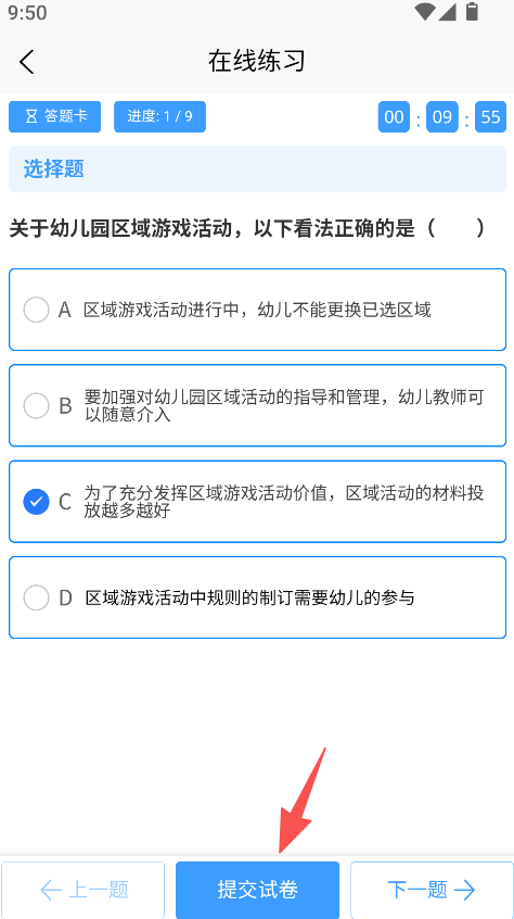 2、在线练习配备计时、提交试卷等功能,还原考试场景,助力考试前的训练与备考冲刺。