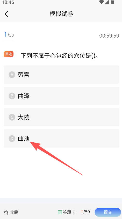 3、实现医考题作答功能,进入模拟试卷页面,可进行题目选择与作答的备考操作。