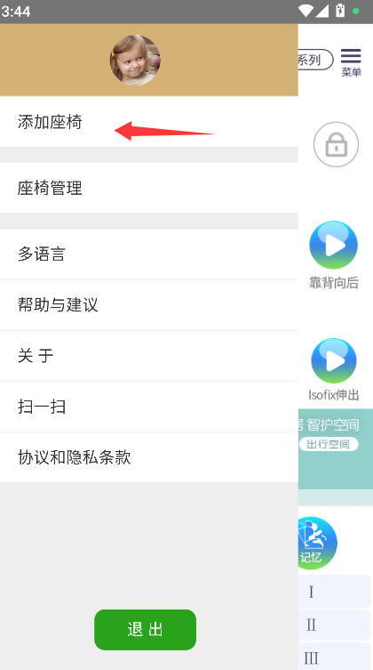 2、找到并选择“添加座椅”或类似的设备添加选项,进入新设备搜索与绑定界面。
