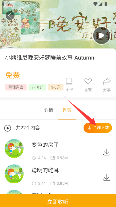3、 在故事详情页内,找到下载按钮并点击,即可将该故事音频文件保存至本地。