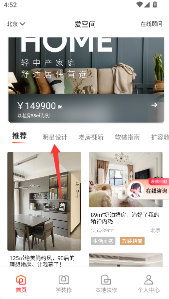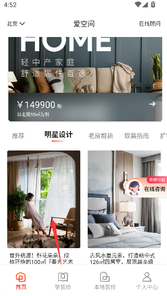 1、点击“明星设计”栏目,仿佛走进一场顶级家装展览会的大门,无数灵感在指尖等待被点亮和收藏。