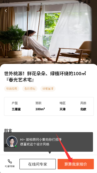 3、轻点那个神奇的“算算报价”按钮,立刻获得一份清晰的家装预算清单,所有花费明明白白,让梦想照进现实。