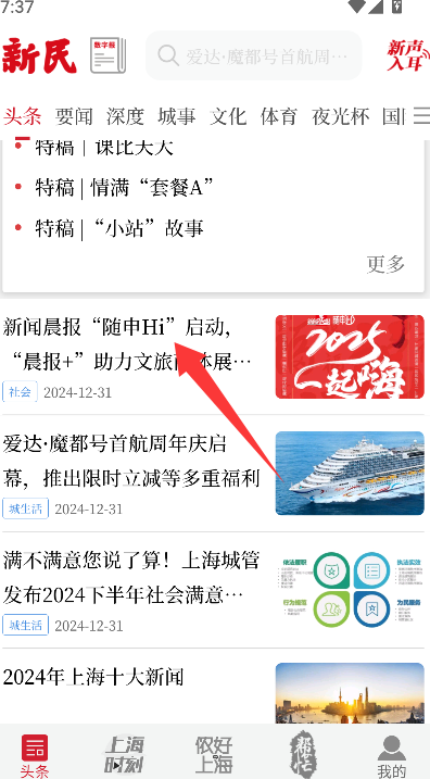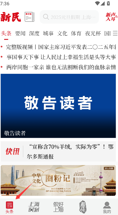 1、找到并点击位于顶部或醒目位置的“头条”新闻板块,进入头条新闻的集中展示列表。
