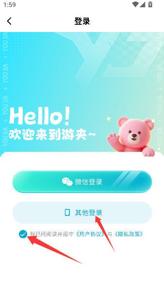 1、快速勾选那份“同意一切”的隐私政策,并机智地点击“其他登录”,仿佛与软件签订了和平共处五项原则。
