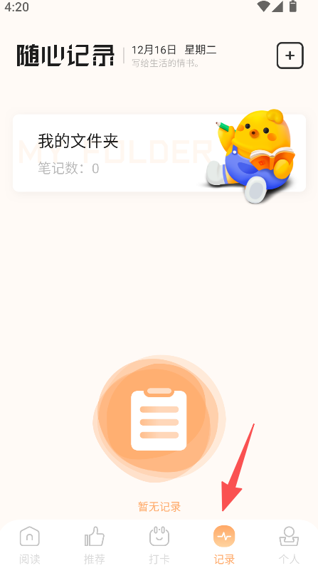 3、进入记录板块,使用随心记录功能书写相关情节。