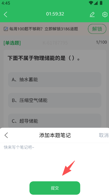 3、点击添加笔记按钮,输入内容后提交完成本题笔记的记录。